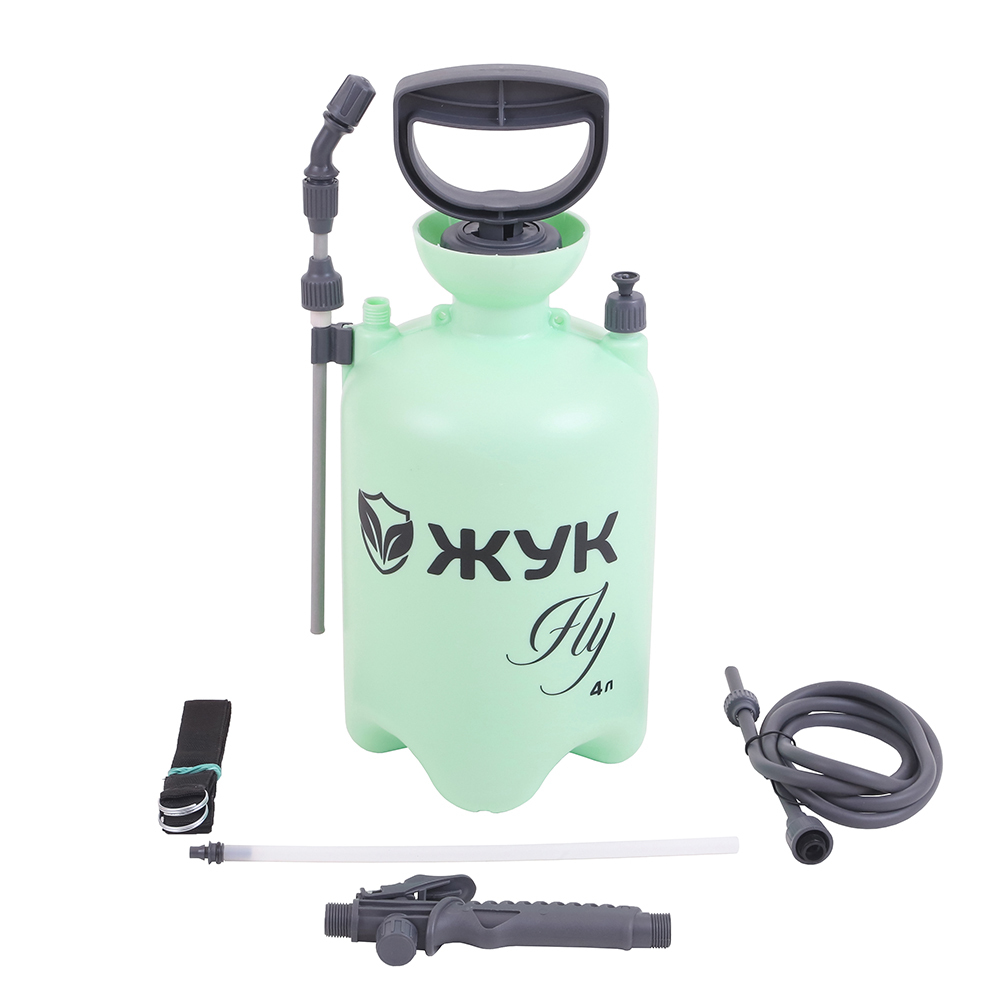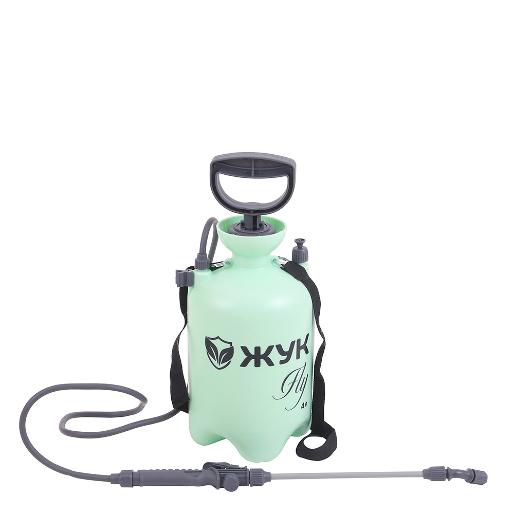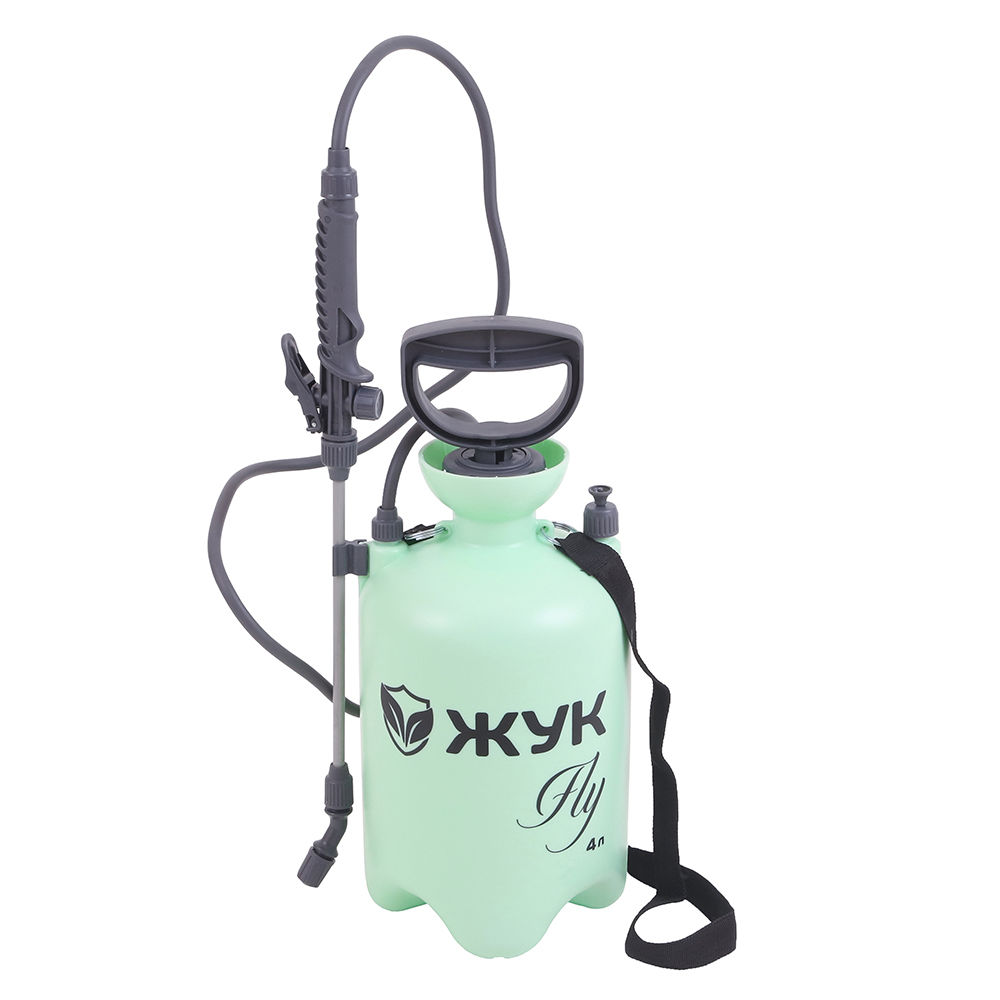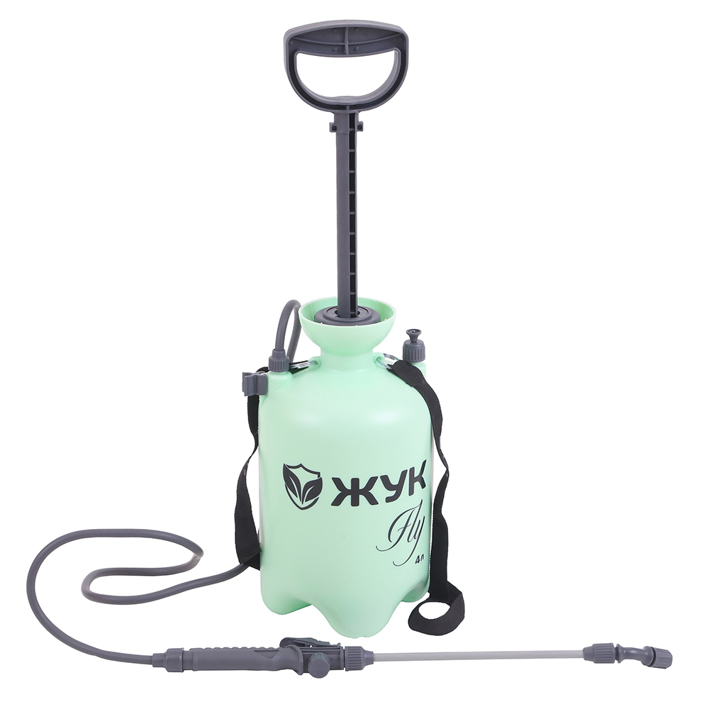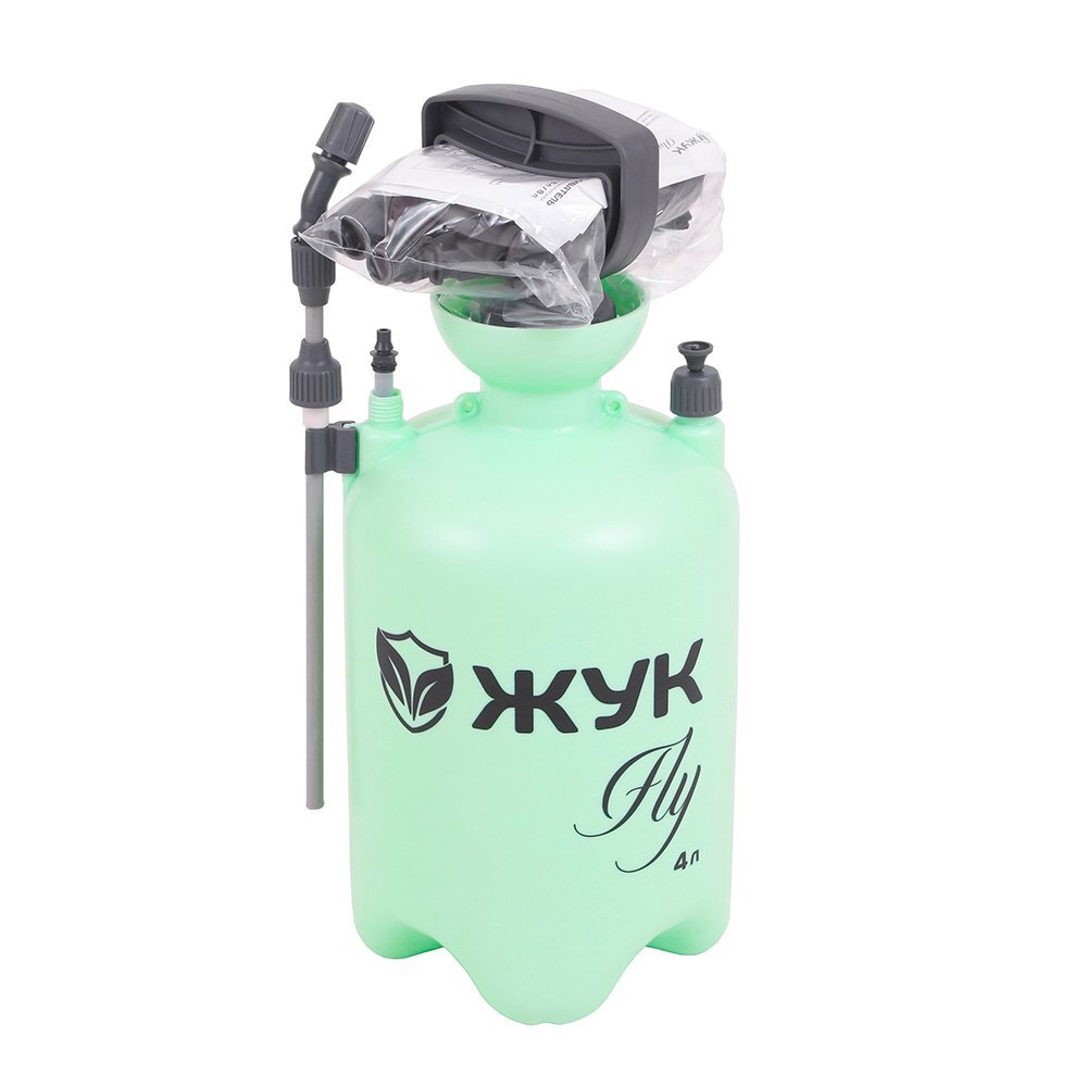 Опрыскиватель 4 л Жук Fly предназначен для обработки растений, кустарников, деревьев средней высоты, огорода, а также для мытья стен, стекол и других хозяйственных работ.
