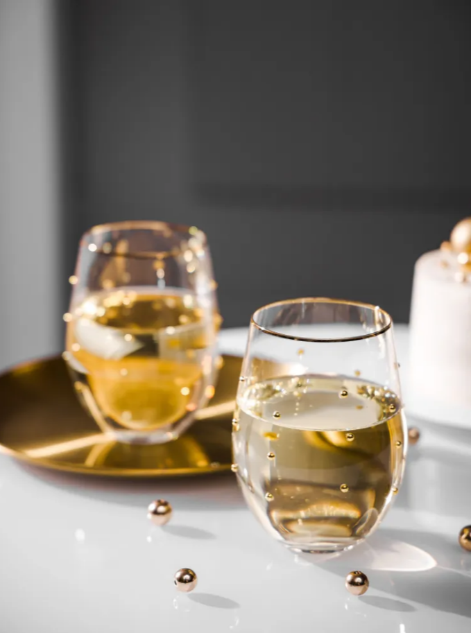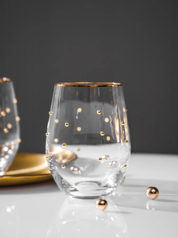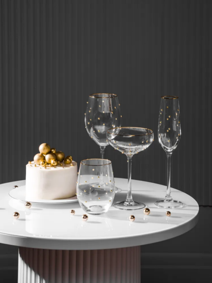 Дизайн свежий и яркий, живой и привлекательный, запоминающийся и стильный. Стаканы украшены объёмными шариками-горошинами. Идеальны для свадебного торжества и новогоднего стола.