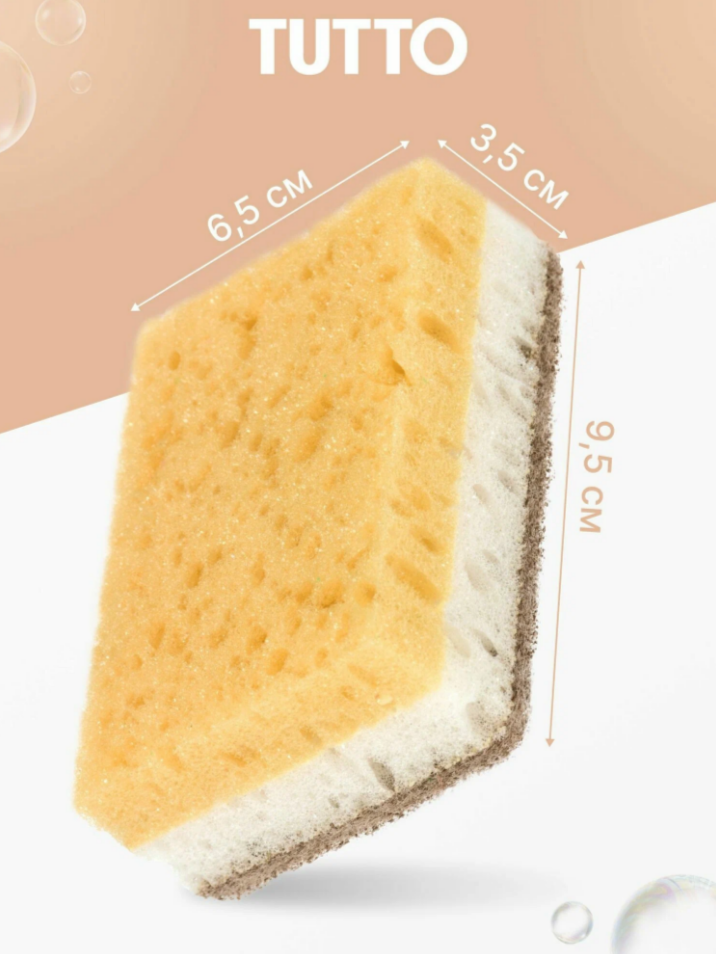 Губки для мытья посуды из поролона с абразивным материалом от бренда TUTTO - это продукт премиального качества, который станет незаменимым помощником на вашей кухне. Эти губки идеально подходит для повседневного ухода за посудой, эффективно удаляя загрязнения и остатки пищи. Мягкая поролоновая часть бережно очищает поверхность, не оставляя царапин, а абразивная сторона легко справляется с более стойкими пятнами и налетом. Эргономичная форма обеспечивает комфортное использование, а компактный размер позволяет удобно хранить губку. Она также обладает отличными впитывающими свойствами, делая процесс мытья еще более приятным.