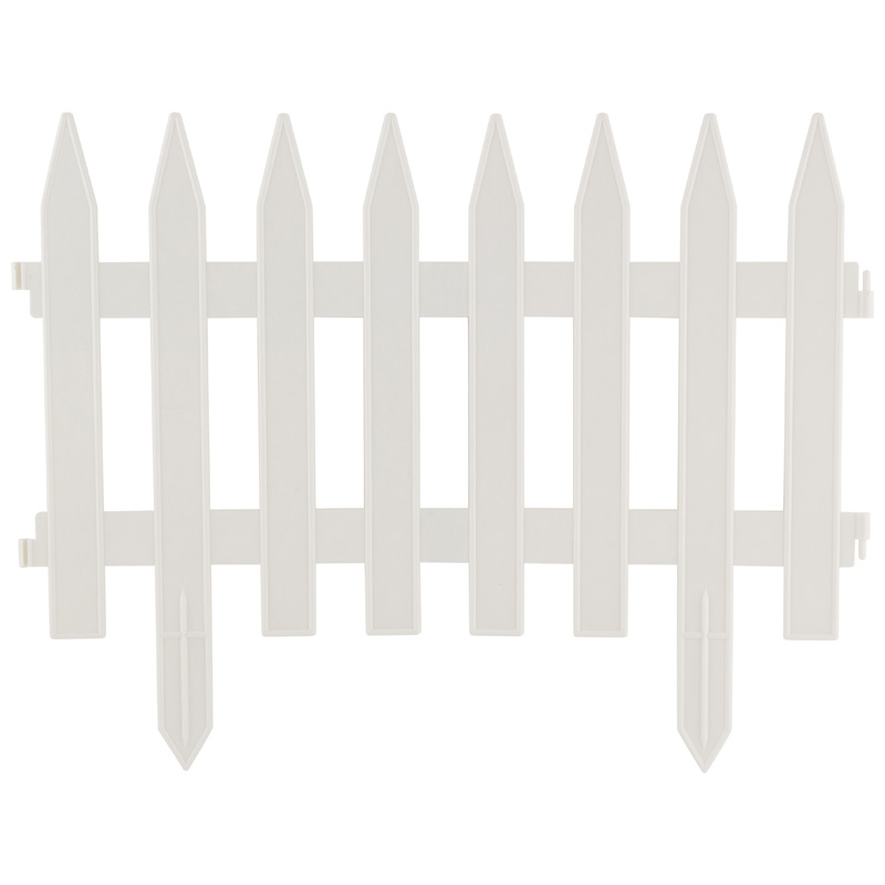 Декоративный заборчик для сада изготовлен из качественного и прочного пластика, который устойчив к воздействиям окружающей среды.Благодаря сборной конструкции из отдельных секций можно собрать ограждение любого размера и формы. Заборчик очень легко собирается и надежно фиксируется.Декоративная изгородь украсит ваш сад и огород. С помощью пластикового ограждения легко выделить грядки на даче, садовые клумбы для цветов, дорожки, зонировать дачный участок, огород, защитить деревья.Преимущества:Быстрая установка.Простая и лёгкая конструкция