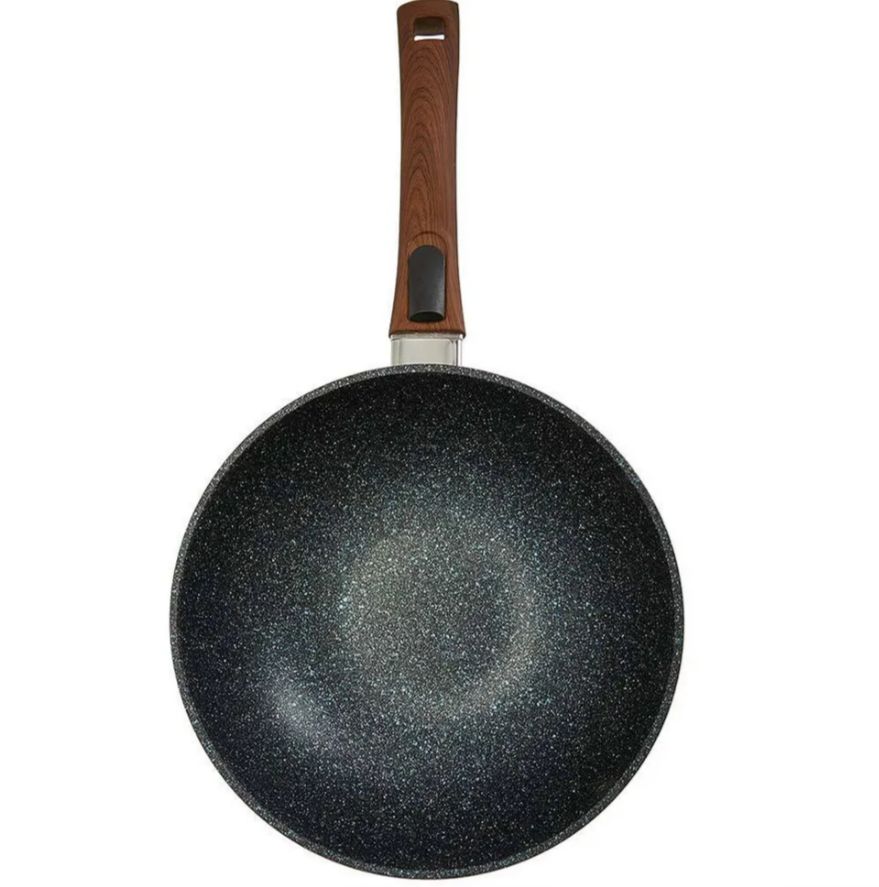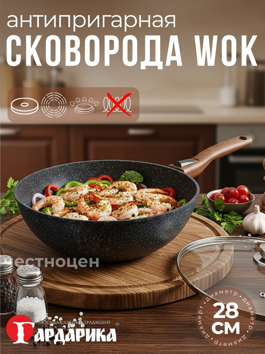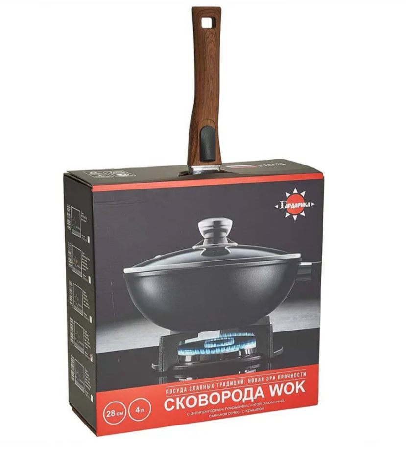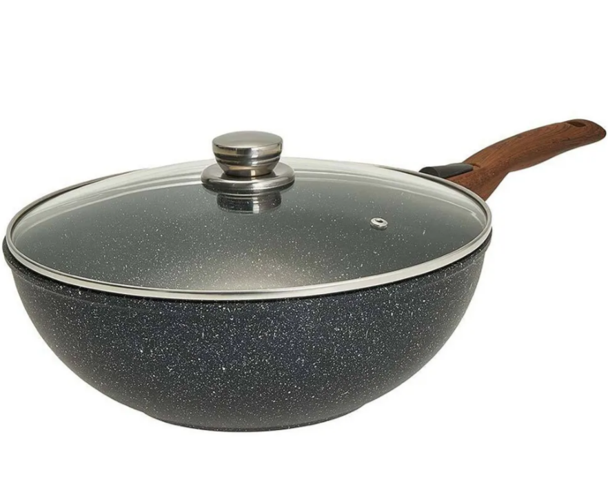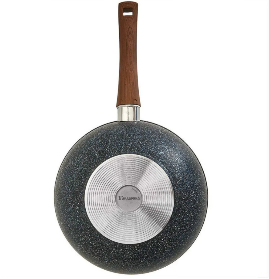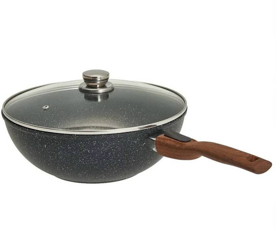 Вок с а/п с крышкой и ручкой съемной д. 28 Серия "Мегалит 14" ТМ "ГАРДАРИКА" 0728-14-01-10. Диаметр 280 мм. Толщина стенок 3,5 мм. Толщина дна 6 мм. Сковорода-вок литая алюминиевая с антипригарным покрытием, стеклянной крышкой и съемной ручкой. Усиленное многослойное антипригарное покрытие с гранитным вкраплением. Серия: Гранит Мегалит 14. Цвет: черный с синей крапушкой. Ручка: съемная бакелитовая soft-touch. Крышка: стеклянная. Утолщенное дно с усовершенствованной обработкой равномерно распределяет тепло.