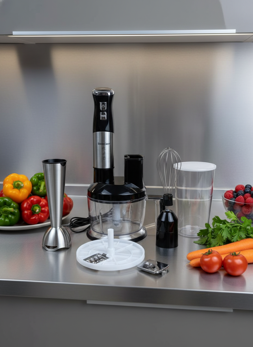 Блендерный набор 6 в 1 OLS-SC-8061 — это незаменимый помощник на вашей кухне для домохозяйки или шеф-повара. Блендер для смузи и коктейлей мощный со стаканом идеально подходит для приготовления смузи, коктейлей и других блюд благодаря острым лезвиям и сильному мотору. Компактный мини блендер для детского питания подходит для мягкого измельчения продуктов. Благодаря своим многофункциональным возможностям, можно использовать его как кофемолку или измельчитель для орехов и льда.