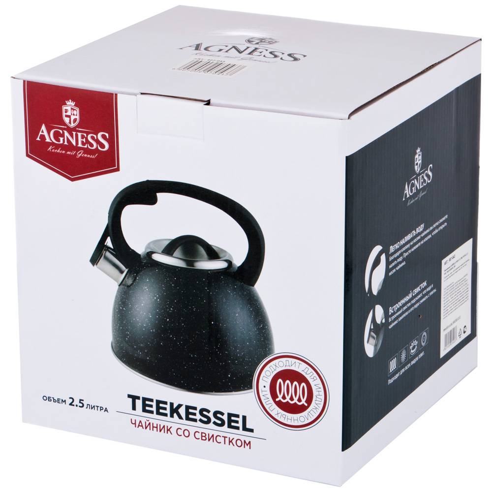 Чайник AGNESS - это надежность, функциональность и стильный дизайн. Чайник выполнен из нержавеющей стали - наиболее прочного и гигиеничного материала. Преимущества: