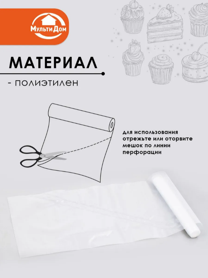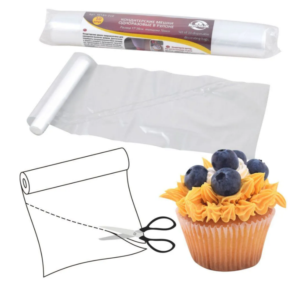 —Кондитерские мешки одноразовые в рулоне 10шт 35*17см МТ80-210 MultiDom