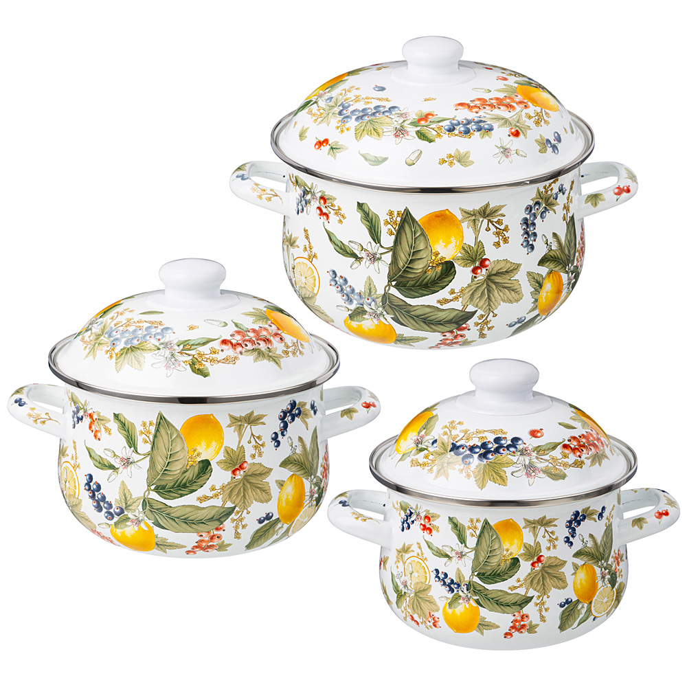 Стильный и нежный декор эмалированной посуды украсит любую кухню.
