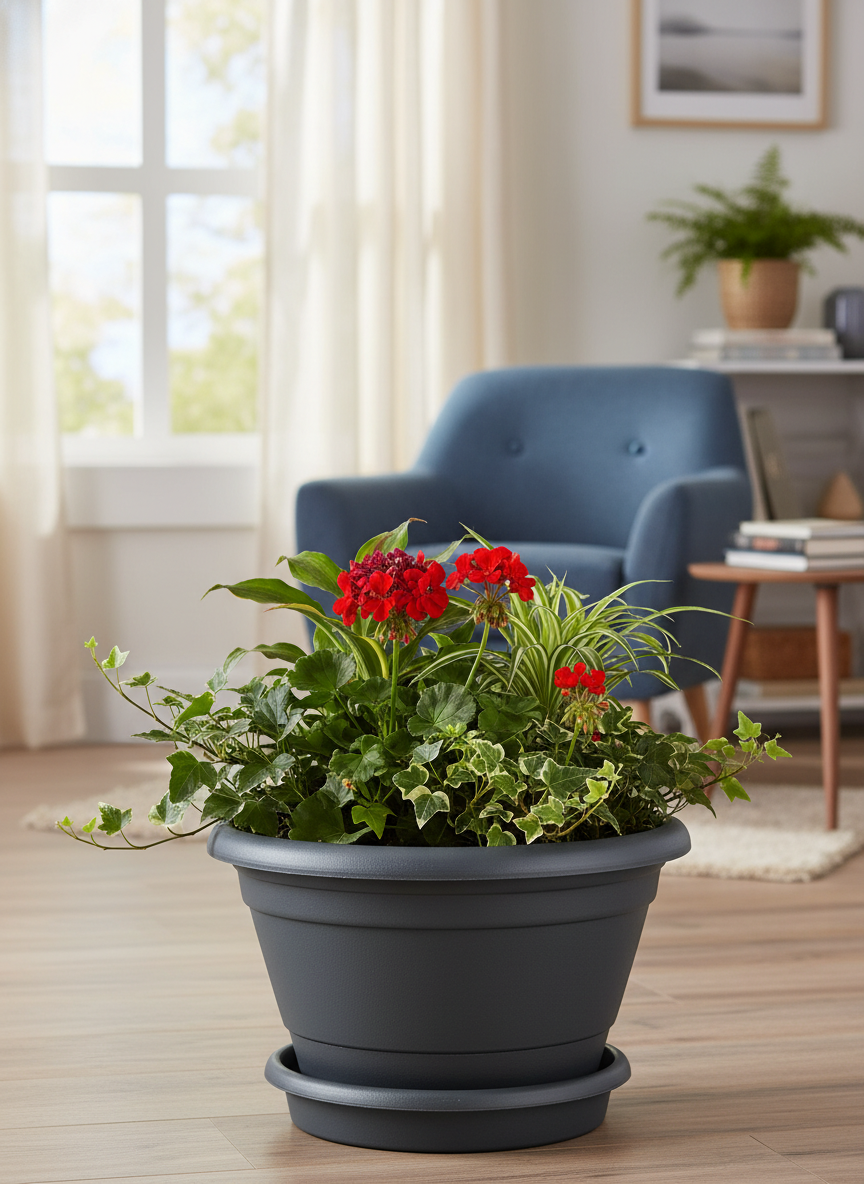 —Горшок для цветов с поддоном InGreen ATHENA 0,5л, вулканический серый IG147011026 Plastic Repablic