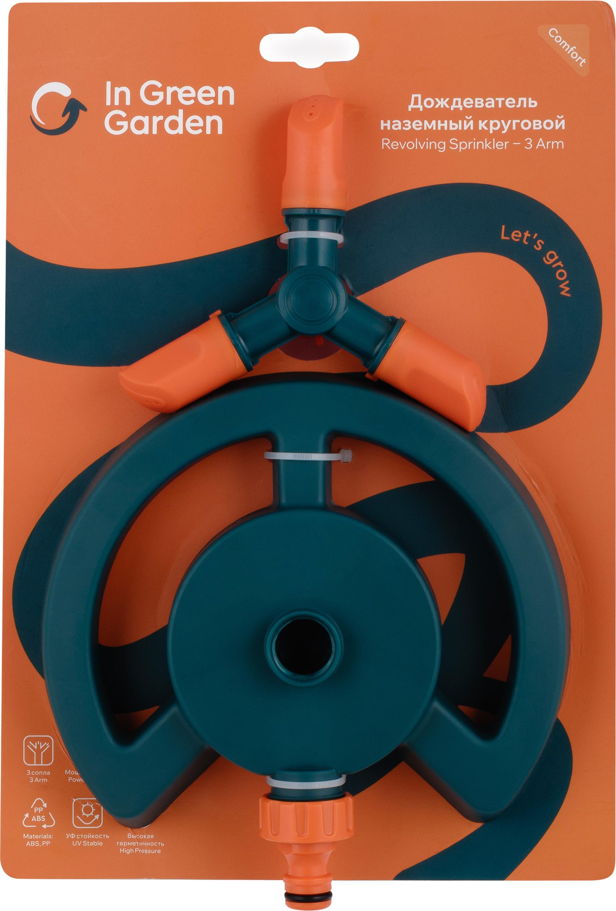 Дождеватель IN GREEN GARDEN наземный круговой, 3 сопла COMFORT GG555112055 Plastic Repablic
