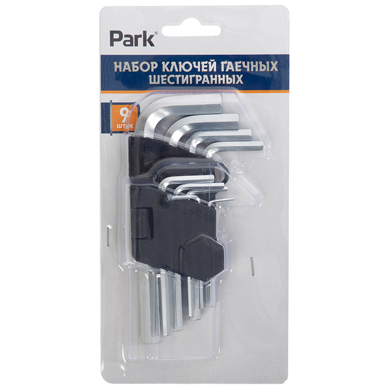 Набор шестигранных гаечных ключей Park 9 шт. 100698 предназначены для работ с крепежными соединениями с шестигранным профилем. Ключи выполнены из качественной стали высокой прочности.
