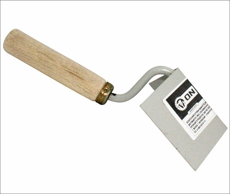 Кельма для внутренних и внешних углов. Форма лопатки напоминает раскрытую дверную петлю. Такая конструкция позволяет производить сразу и наружную и внутреннюю корректировку, не меняя положения тела