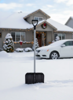 Снеговая лопата БОГАТЫРЬ №2 пластмассовая с оц.планкой 480х360мм, ø-32 с дер. черенком и V-руч 02039