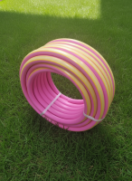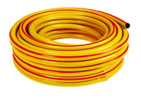 Шланг ПВХ армированный 3-х слойный 3/4" Радуга желтый с красной полосой 25м 104155